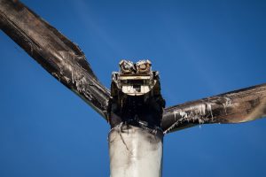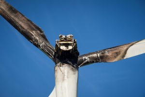 Auf einem Streifzug um Husum, entdeckte ich dieses ausgebrannte Windkraftwerk, und wie ich fand ist es ein schönes morbides Sinnbild mit dem ausgebrannten Zentrum und den noch intakten Flügeln.